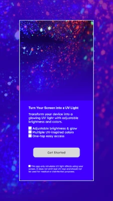 This app uses your screen or camera flash to produce UV-inspired glow effects — perfect for creating an ambient atmosphere or experimenting with light in dark spaces.