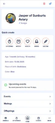 - Litter Tracking: Effortlessly manage your litters from conception to their new homes. Track weight, vaccination schedules, and individual juvenile statuses (Available, Reserved, Sold, Staying).