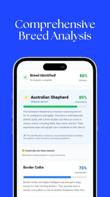 • Multiple Analysis Options: Get primary breed identification plus alternative matches