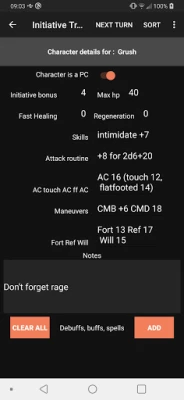 An initiative tracker that allows you to manually add the initiative, name, hp, notes, and number of rounds for (de)buffs and spells and more.