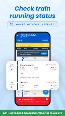 ● Receive train updates like rescheduled, cancelled, or diverted trains
