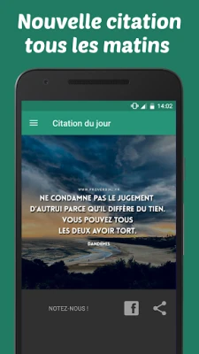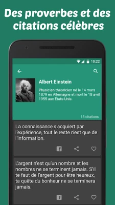 Cette application est destinée aux personnes qui aiment les citations et les proverbes en tout genres ! Quelle que soit la situation ou l’émotion recherchée vous trouverez la citation parfaite qui vous conviendra.