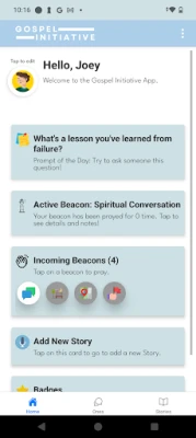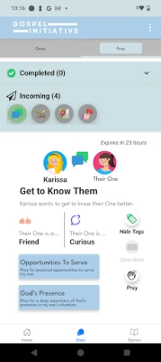 The Gospel Initiative App equips Christians to confidently share their faith, love non-Christians intentionally, and unite in prayer with a growing community of believers.