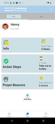Privately track your relationship with “Your One”—a person you’re praying for and seeking to share your life and faith with. Take notes, log spiritual conversations, and set action steps synced to your calendar. Use the Gospel Steps tool to share core truths clearly and intentionally.
