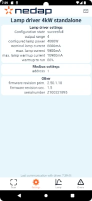 Rapid troubleshooting is critical to ensure minimal downtime of UV systems. Access all UV lamp driver measurements with real-time monitoring, alerts, diagnosis and fault finding on-site. Get instant access to performance information and insights of individual UV Lamp Drivers, without disrupting the operational processes controlled by Modbus. The app works with Nedap’s 4 kW lamp driver platform. Scan the QR code on the lamp driver to connect (via blue tooth).